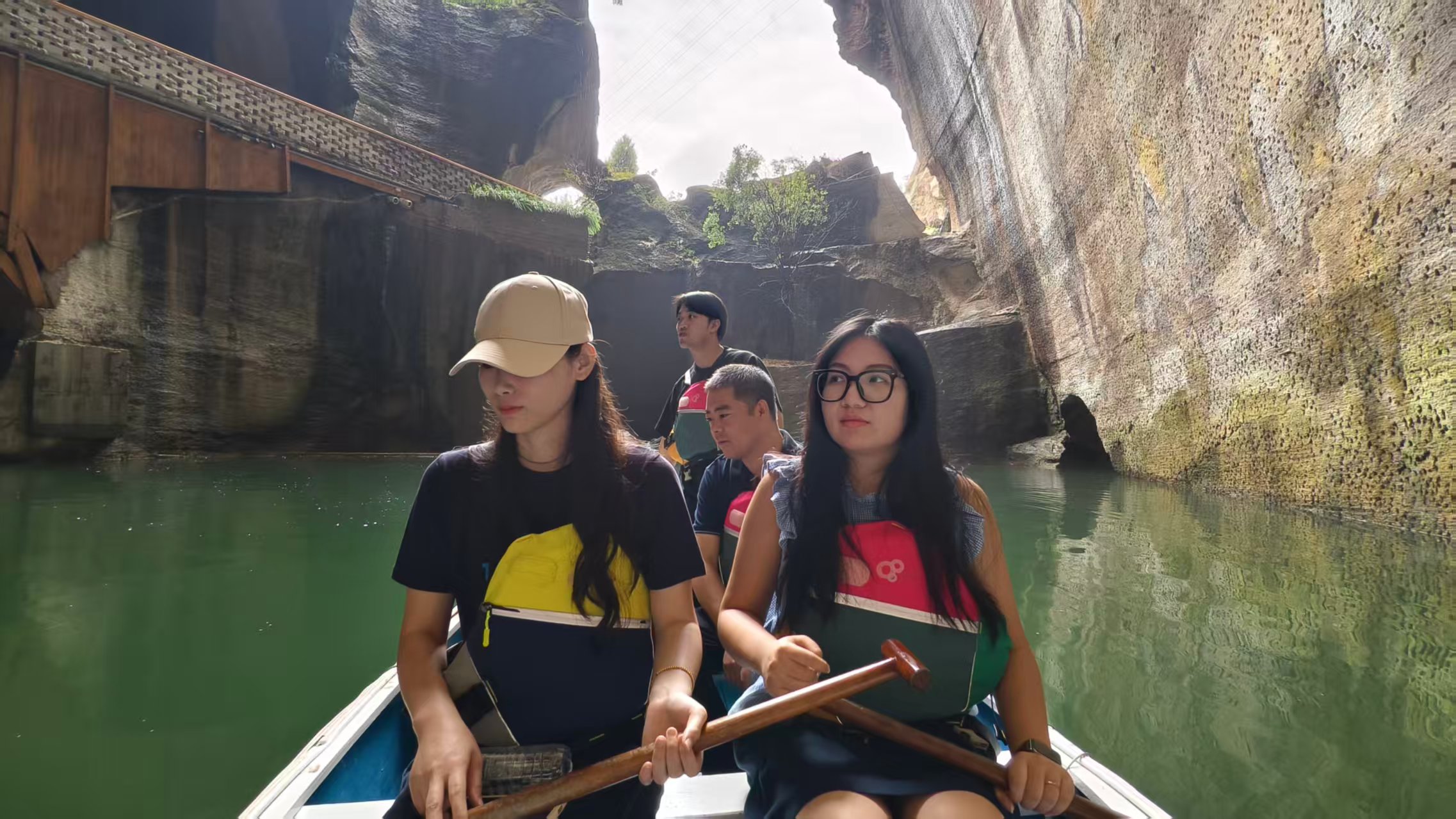 "ركوب القوارب على الجبال الفارغة" فريد من نوعه: المياه في المنطقة ذات المناظر الخلابة عمودية وأفقية، ويمكنك التنقل بين الكهوف بالقوارب. يتناقض سطح الماء الأخضر بشكل حاد مع الجدار الصخري الخام، كما لو كان يدخل إلى عالم سري معزول، والتقاط الصور خارج الصورة تمامًا.
